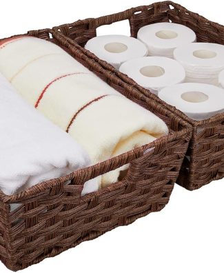 Introducing our versatile set of 2 Large Wicker Storage Baskets, a stylish and functional addition to any home decor. Crafted with a sturdy metal frame and woven wicker material, these baskets offer both durability and a charming aesthetic. Each basket measures 15″ x 10.3″ x 5.2″, providing ample space to organize and store a variety…